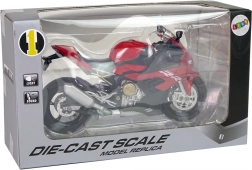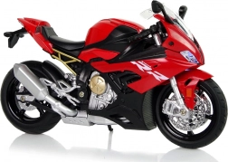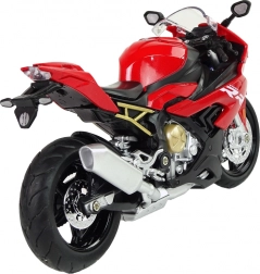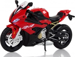 Realistický model motorky BMW S1000RR v elegantní červené barvě potěší děti i sběratele. Kovové provedení zajišťuje odolnost, nechybí světelné a zvukové efekty, otočná řídítka a gumové pneumatiky pro jistý kontakt s podložkou. Díky výklopnému stojánku se model skvěle vyjímá na poličce.
