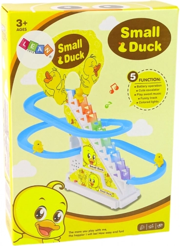 Zábavná a edukativní skluzavka s kačenkami pomáhá dětem rozvíjet zrakové vnímání, poznávání barev a zvuků a koordinaci pohybů. Po jednoduchém sestavení a vložení baterií se kačenky vydají po schůdcích nahoru a pak sviští po tobogánu dolů, zatímco barevná světla a hudba vytvářejí radostnou atmosféru. Hladké tvary bez ostrých hran zajišťují bezpečnou hru pod dohledem rodičů.