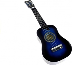 Dřevěná dětská kytara 60 cm v modré barvě přináší opravdové hraní pro nejmenší. Nabízí 6 strun, možnost ladění pomocí mechanik a součástí je trsátko. Lakované dřevo a pečlivé zpracování zajišťují reálný zvuk. Vhodné od 3 let, certifikace CE.