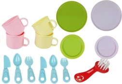 Talířky, kelímky, sady příborů, kartáček i „jar“ dodají hře na kuchyň realistický rozměr a více způsobů hry.