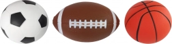 Zábavná sada tří měkkých míčků pro malé sportovce přináší bezpečnou hru doma i venku. Díky lehkému a měkkému materiálu jsou míčky ideální pro děti od 3 let. Design odpovídá skutečným míčům na fotbal, basketbal a baseball, takže děti mohou napodobovat oblíbené týmové sporty a zároveň si zlepšovat koordinaci a kondici.