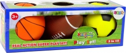 Tato sada 3v1 je ideální pro první sportovní zážitky dětí. Míčky jsou vyrobeny z měkkého a příjemného materiálu, který je šetrný k malým ručkám a zároveň bezpečný pro hraní v interiéru i exteriéru. Realistické barvy a vzory jednotlivých týmových sportů motivují děti k aktivnímu pohybu a napodobování oblíbených her.