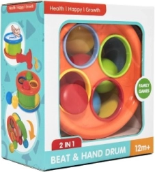 Zatloukačka a Bubínek 2v1 nabízí dvě hračky v jedné – zatloukání kuliček s kladívkem a hru na bubínek. Tento pestrý a interaktivní produkt podporuje vývoj klíčových schopností u dětí.