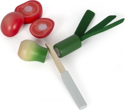 Potraviny jsou spojeny suchým zipem, což umožňuje jejich "krájení" přiloženým dřevěným nožem. Děti si tak mohou hrát na vaření stejně jako dospělí.