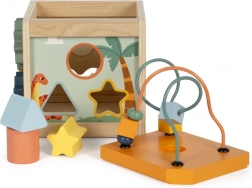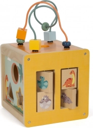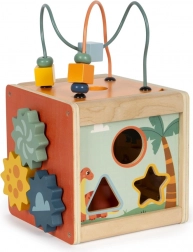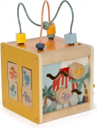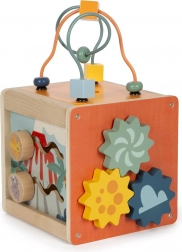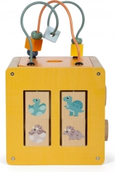 Korálkový labyrint na vrchní části kostky rozvíjí koordinaci ruka-oko a jemnou motoriku.