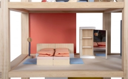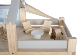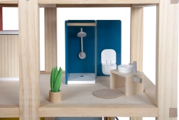 Domeček je detailně vybaven mini nábytkem a jeho design umožňuje neustálé změny díky oboustranným zadním stěnám. Děti mohou snadno měnit vzhled a uspořádání a zažívat nekonečné hodiny her a zábavy.