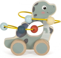 Dinosaurus nabízí hru s posouváním na kolečkách a interaktivní labyrint s korálky, což rozvíjí jemné i hrubé motorické schopnosti dětí.