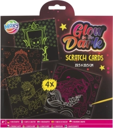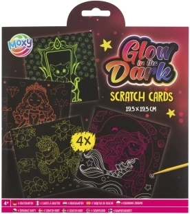 Kreativní sada vyškrabávacích obrázků s dívčím motivem potěší malé tvůrce. Obsahuje 4 ks o rozměru 19,5 × 19,5 cm, které po nasvícení svítí ve tmě. Ideální pro děti 4+.