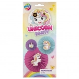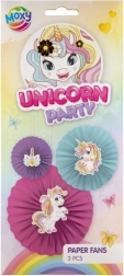 Ozdobte každou oslavu kouzelnou atmosférou s těmito papírovými vějíři s motivem jednorožce. V balení najdete 3 barevné kusy (růžová, modrá, fialová), ideální pro dekoraci dětských narozenin, tématických party i fotokoutků.