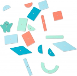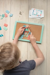 Obsah balení: korková nástěnka 19 × 29 cm, 10 karet s předlohami 8 × 13 cm, 33 dřevěných tvarů, dřevěné kladívko. Vyrobeno z kvalitního dřeva, korku a kovu pro odolnost a dlouhodobé použití.