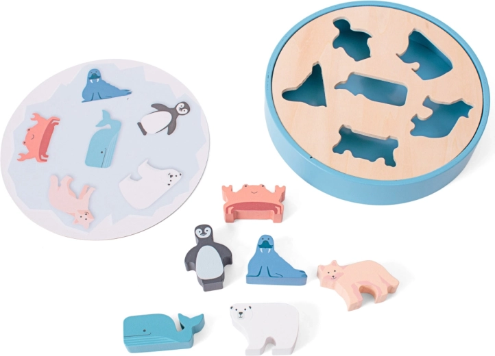 Tato kvalitní dřevěná vkládačka se zvířátky (tuleň, lední medvěd, krab, tučňák, liška a kosatka) nabízí ideální první puzzle pro malé průzkumníky. Dílky jsou robustní, dobře padnou do dětské ruky a díky jasným obrysům a ilustracím se snadno vkládají na své místo.