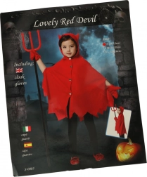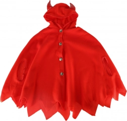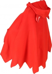 Zářivě červená peleryna se zapínáním na 4 druky a zubatým lemem dodá kostýmu výrazný čertí vzhled a přitom zůstává pohodlná po celý den.