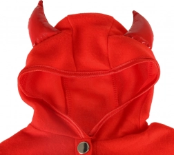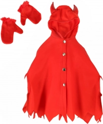 Proměňte své dítko během chvilky v rošťáckého čertíka. Červená peleryna s kapucí a výraznými rohy má zubatě střižený spodní lem a zapínání na čtyři druky, takže skvěle drží a snadno se obléká i svléká. Hebké červené rukavičky s plyšovým lemem příjemně hřejí a dotahují čertovský look k dokonalosti.