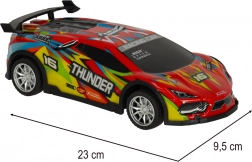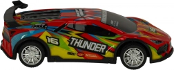 Červené závodní auto THUNDER přináší napínavou jízdu od první sekundy. LED osvětlení zvýrazní akci i v přítmí a gumové pneumatiky zajišťují dobrou přilnavost bez poškrábání podlahy. Skvělé pro zábavu v interiéru i na dvoře.