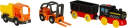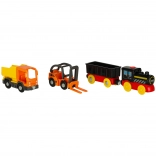 Funkční jeřáb a vysokozdvižný vozík umožní nakládat a vykládat náklad. Děti si procvičí jemnou motoriku a vytvářejí vlastní příběhy z prostředí stavby.