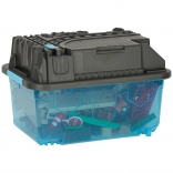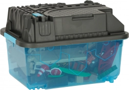 Pevný modrý box slouží během hry jako prvek tratě a po hraní jako praktické úložiště. Udrží všechny díly na jednom místě.