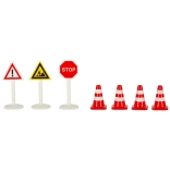 - lokomotiva s vagónem, jeřáb, vysokozdvižný vozík, 4 figurky, 6 stromků, 3 dopravní značky, 4 kužely, paleta a náklad, úložný box, kolejové díly