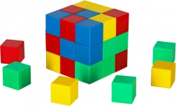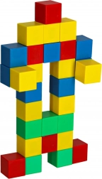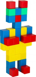 Sada stavebních kostiček obsahuje 64 magnetických kostek, které se spojují pomocí magnetů a umožňují vytvářet různorodé konstrukce. Každá kostka má tvar čtverce, což dává dítěti možnost volně tvořit jak jednoduché, tak složitější stavby. Kostky jsou v intenzivních barvách: zelené, žluté, červené a modré, které přitahují pozornost a lákají k tvorbě barevných projektů.
