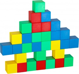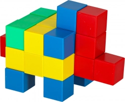Hra s kostkami umožňuje svobodné experimentování a tvoření barevných figur, což rozvíjí prostorovou představivost a kreativitu dětí.