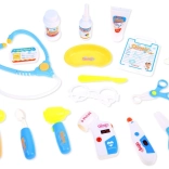 Stetoskop, teploměr, otoskop, tlakoměr, stříkačka, nůžky, skalpel, brýle a další doplňky – vše pro kompletní hru na doktora.