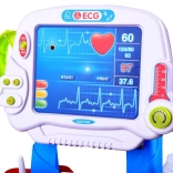 Dětský monitor zobrazuje průběh EKG a doprovází hru světly a zvuky, což dává vyšetření realistický nádech a udržuje děti v akci.