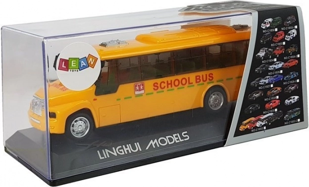 Zábavný žlutý školní autobus potěší malé milovníky autíček. Nabízí natahovací (pull-back) pohon, světelné efekty s zelenými LED, příjemné zvuky a otevírací přední i zadní dveře. Díky pevné a odolné konstrukci zvládne časté hraní, průhledná dárková krabička se navíc krásně vyjímá na poličce.