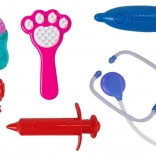 Stetoskop, teploměr, stříkačka, krmící lahvička, kartáč, laryngologické zrcátko a 2 ks sádry – vše pro malé veterináře.