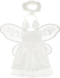 Kostým je doplněn o brokátová křídla s třpytivou úpravou, která dodávají vzhled anděla.