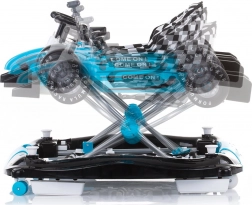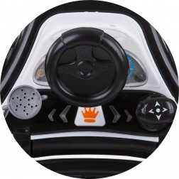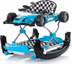Ergonomické sedátko s 3 výškovými polohami roste s dítětem a přední kolečka otočná o 360° usnadňují manévrování. Odnímatelný pultík ve tvaru formule s tlačítky, zvuky a světly rozvíjí zrak, sluch i koordinaci. Chodítko je vyrobeno z kvalitních a bezpečných plastů, snadno se skládá a skladuje a splňuje normu EN 1273.
