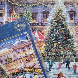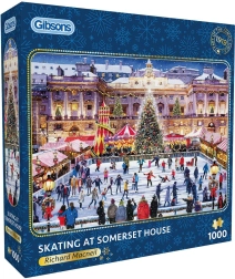 Puzzle "Bruslení u Somerset House" od prestižní značky Gibsons je ztělesněním zimní pohody a kouzla Vánoc. Na fascinující ilustraci Richarda Macneila můžete vidět bruslaře klouzající se po kluzišti, které je krásně osvětleno vánočními světly a obklopeno stánky s horkými nápoji a dobrotami. Tento motiv přinese do vašeho domova atmosféru londýnské vánoční pohádky.