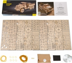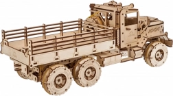 Užijte si stavbu ikonického nákladního vozu inspirovaného legendárními 6x6 stroji. Detailní motor pod otevírací kapotou, funkční kliky dveří, nastavitelná zrcátka a sklopné dveře nákladového prostoru podtrhují autentický vzhled i funkčnost modelu. Pružinový motor přenáší sílu přes dva diferenciály na přední i zadní nápravu, takže model skutečně jezdí.