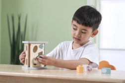 Hračka je vyrobena z kvalitního lakovaného dřeva a barvena netoxickými, bezpečnými barvami v moderních polárních tónech. Ideální pro každodenní hraní doma i v mateřských školkách – odolná konstrukce, hladké hrany a promyšlený design podporují rozvoj fantazie i kreativity.