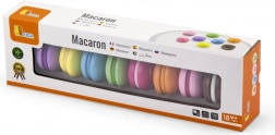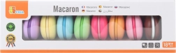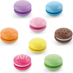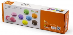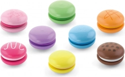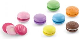Sada obsahuje 8 realisticky zpracovaných makronek v jemných pastelových barvách. Každá makronka se skládá ze dvou částí spojených suchým zipem, takže je děti mohou snadno „rozpůlit“ a znovu spojit – trénují tak úchop, koordinaci ruka–oko a objevují kombinace barev.