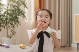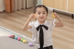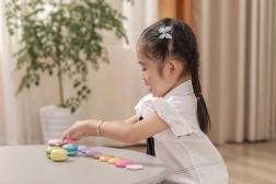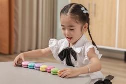 Dvě poloviny každé makronky jsou spojeny suchým zipem – děti je mohou rozdělovat a znovu skládat do nových „příchutí“ a trénovat prsty i koordinaci.