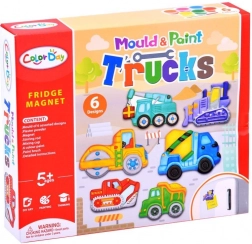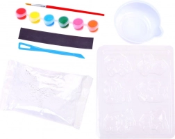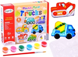 Tato chytrá DIY sada nadchne všechny děti, které rády tvoří. Z alabastrové směsi si odliješ tvary stavebních strojů, po zaschnutí je vybarvíš přiloženými barvami a nakonec nalepíš magnetickou pásku. Snadné, čisté a ohromně zábavné!