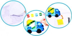 Součástí balení je vše, co potřebuješ: miska a míchátko na sádru, štětec, 6 barev, magnetická páska a návod. Vytvoříš až 6 originálních magnetek – buldozer, jeřáb, domíchávač, válec, bagr a nákladní auto. Skvělý dárek, který podporuje kreativitu, jemnou motoriku a trpělivost.