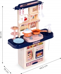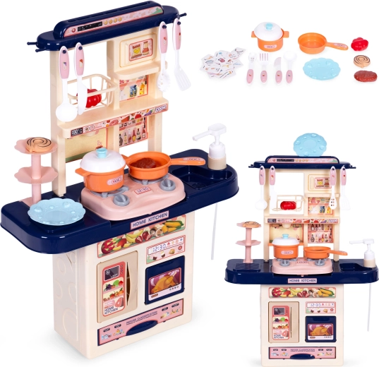 Stylová dětská kuchyňka pro malé kuchaře nabízí zvukové a světelné efekty, funkční dřez s kohoutkem, otáčecí knoflíky s cvakáním a otevírací skříňky. Součástí je 10 doplňků včetně hrnce, pánve a potravin. Podporuje kreativitu, manuální dovednosti a učení formou hry, včetně třídění odpadu pomocí přiložených puzzlí.