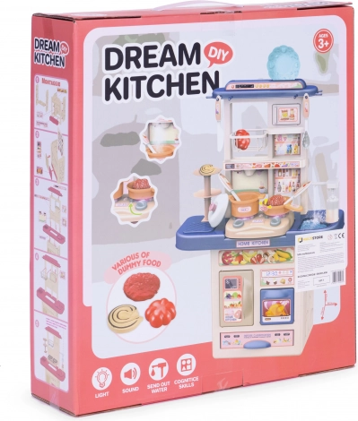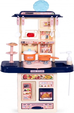 Dopřejte dětem realistickou zábavu v jejich vlastní kuchyni. Po zapnutí hořáků se ozývá zvuk vaření a plotýnky se rozsvítí červenými LED. Dřez lze naplnit vodou – po připojení zásobníku funguje kohoutek a z něj opravdu teče voda.