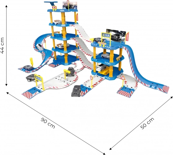 Tato prostorná policejní garáž nabízí dětem nekonečné hodiny zábavy. Čtyři patra v první části a dvě úrovně v druhé části umožní parkování, manévrování i akční zásahy. Reálné prvky jako čerpací stanice, přistávací plocha pro vrtulník a bezpečnostní zábrany po obvodu podporují kreativní hry a vytváření vlastních příběhů.