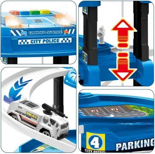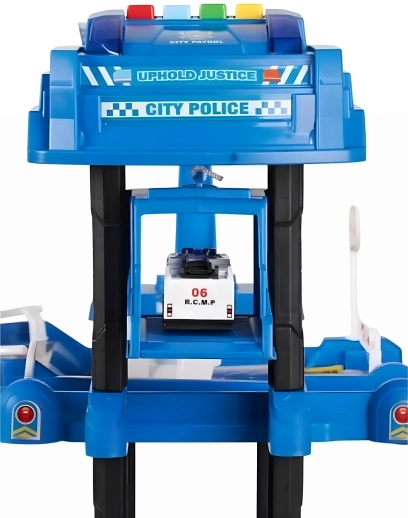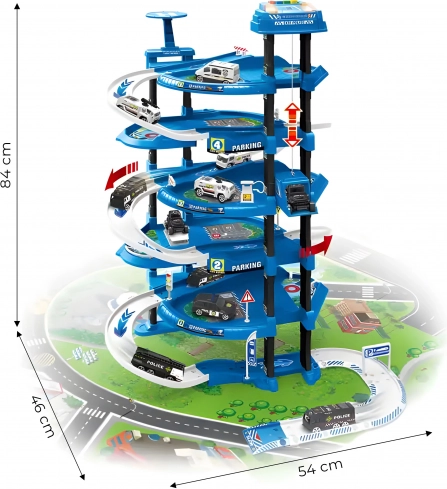 Objevte pětiposchoďové parkovací garáže s policejní stanicí, které potěší každého malého řidiče. Díky realistickým detailům, jako jsou rampy, bariéry, značky a heliport na střeše, si děti vytvoří vlastní příběhy a scénáře. Interaktivní výtahem vyvezou auta až na vrchol, kde na ně čeká další akce.