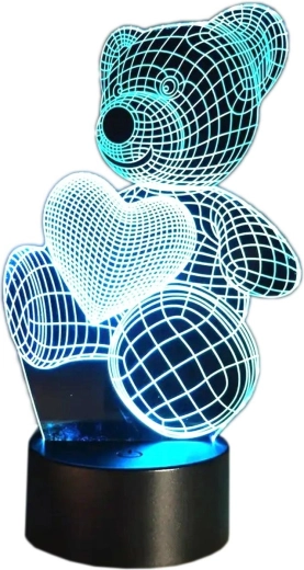 Udělejte radost sobě i dětem stylovým osvětlením. Medvídek s tištěným srdcem na akrylové destičce vytváří poutavý 3D efekt a díky energeticky úsporným LED poslouží jako jemné orientační světlo i relaxační dekorace. Volit můžete stálé svícení nebo automatické střídání barev, vše pohodlně přes přiložený dálkový ovladač.