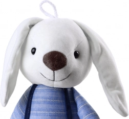 Králíček je vysoký přibližně 60 cm, takže se pohodlně drží i malým dětem. Stylové oblečení s proužky a lacláče dodávají hračce osobitý vzhled, který si děti rychle zamilují.