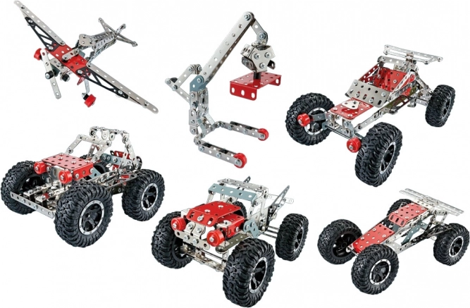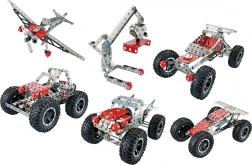 Tato univerzální kovová stavebnice 6v1 nabízí 288 precizně zpracovaných komponentů včetně pásků, úhelníků, barevných plíšků, šroubků, matek, kol a šroubováku. Děti od 8 let si s ní postaví realistické modely vozidel i jednoduchých strojů a naučí se základy mechaniky a konstruování.