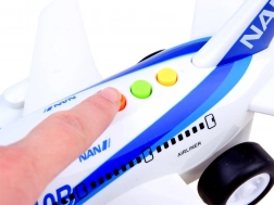 Stisknutím barevných tlačítek přehrajete zvuk letadla a hlas letušky v angličtině. Děti si zamilují interaktivní ovládání.