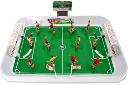V balení najdete 12 hráčů, bojiště, 2 branky, míček, tabuli skóre, stožáry a samolepky vlajek – stačí rozbalit a hrát.