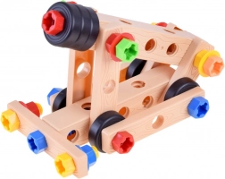 Tato kreativní stavebnice je ideální volbou pro malé konstruktéry. Díky promyšlenému systému otvorů v "dřevěných" plastových lištách a barevným šroubkům lze snadno spojovat jednotlivé díly a vytvářet stabilní modely. Děti si při hře procvičí koordinaci oko–ruka, zručnost i trpělivost.