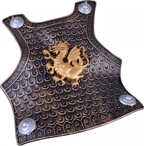 Detailní reliéf a dekor ve stylu starého zlata s emblémem draka dodá kostýmu působivý, středověký charakter.