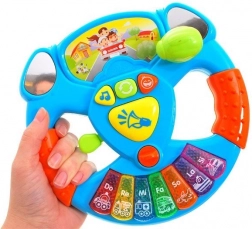 Interaktivní hudební volant je ideální společník na cesty i pro hru doma. Děti se cítí jako skuteční řidiči díky autentickým efektům a jednoduchému ovládání. Barevné klávesy Do–Re–Mi a další tóny spouštějí melodie a zvuky dopravních prostředků, které rozvíjejí sluch, koordinaci a rytmus.