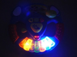 Volant má přehledné tlačítkové rozhraní: tlačítko s notou spustí veselé melodie, zelené tlačítko je přepíná a oranžové tlačítko s úsměvem přehraje dětský smích. Kvalitní provedení a příjemné barvy zaručují dlouhou a bezpečnou zábavu i pro nejmenší.
