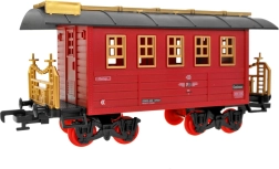 Součástí sady je lokomotiva a 3 vagóny, 22 dílů kolejí, nádraží, čekárna, stromky, nabíjecí akumulátor a USB kabel. Po sestavení získáte rozměrnou trať o velikosti 213 × 120 cm, ideální pro dlouhé jízdy a kreativní stavění.